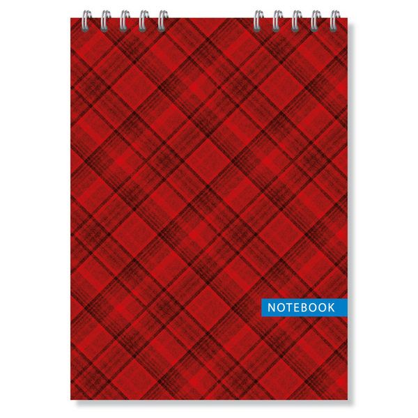 Блокнот А-5 48аркушів клітинка, спіраль верхня, картонна обкладинка Шотландка червона Поліграфіст
