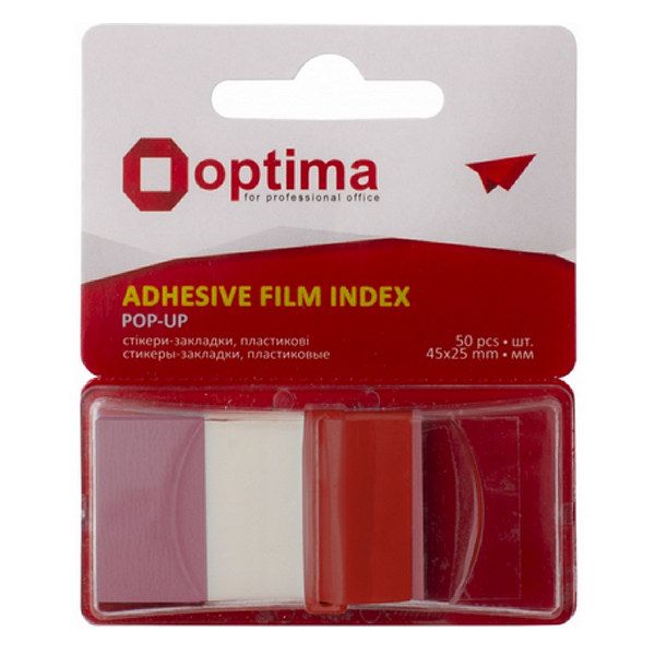 Індекси пластик клейкі 25х45 50арк червоні Optima