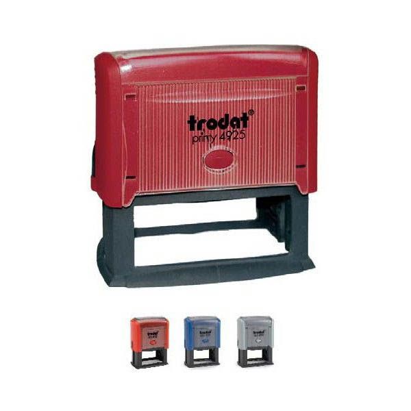 Штамп Trodat 4925 з можливістю самостійного набору 5 рядків тексту за допомогою каси букв і цифр, і пінцета. Максимальна кількість знаків в рядку (включно з пробілами) - 39 (каса 3мм) і 30 (каса 4мм). Текст набирається в дзеркальному відображенні справа наліво. Комплектація: оснащення, 2 каси українських букв і цифр 3 мм (6003) і 4 мм (6004), пінцет, вбудована змінна подушка 6/4925 синього кольору. Змінна подушка буває синього, фіолетового, чорного, червоного, зеленого кольорів і неокрашенная.