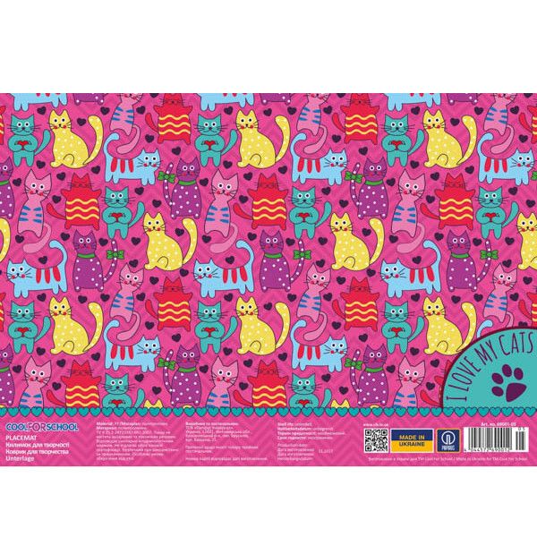 Килимок для дитячої творчості "Funny Cats". Вік: 3+; стать: дівчинка; розмір: 27х38,5 см. Легко миється водою.