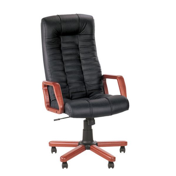 Крісло Atlant пластикові підлокітники і хрестовина, чорний, шкіра