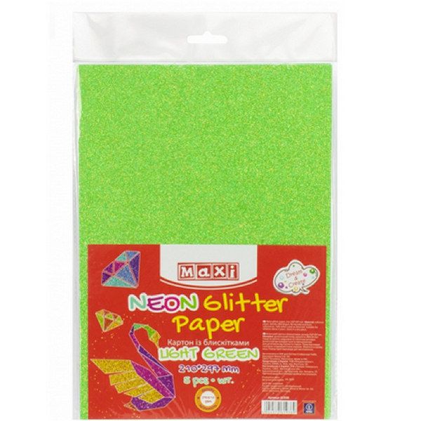 Картон з глітером А-4 флуоресцентний м'ятний 5шт/уп MAXI