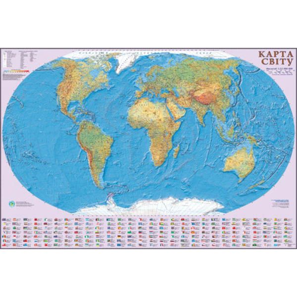 Карта Світу загальногеографічна М1: 22 000 000 160х110см картон/ламін./планки