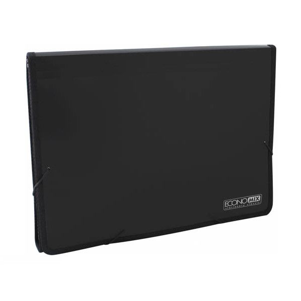 Пластиковая А4 на резинке, 13 отделений с индексами, фактура: апельсин, черная.