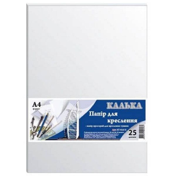 Калька формат А4. Подходит для работы тушью, карандашом, а также печати на струйных и лазерных принтерах. Плотность 42г/м2.