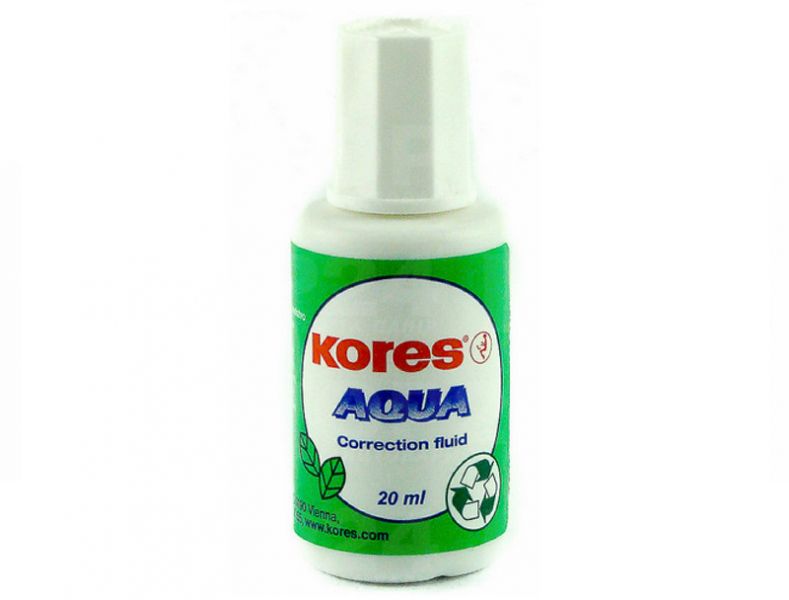 Корректор-жидкость Kores AQUA SOFT TIP на водной основе. Аппликатор для нанесения - кисточка. Жидкость не имеет резкого запаха, безопасна (не занимается) и нетоксична. При загустение можно использовать обычную воду. Флакончик 20 мл оснащён специальным металлическим шариком. Перед применением взболтать.
