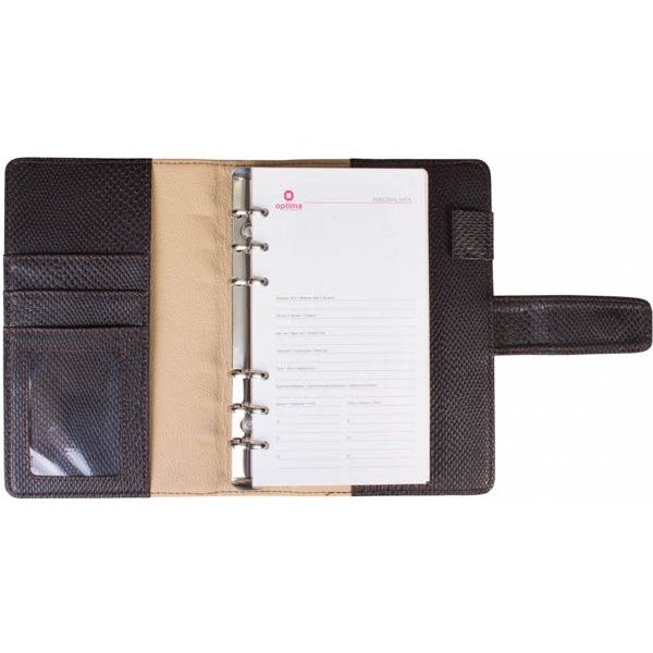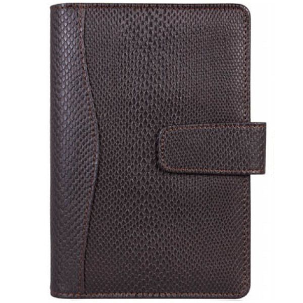 Бизнес-организатор, магнитная застежка, искусственная кожа, на кольцах, фактура - змея, 130 * 190 мм, черно-коричневый.