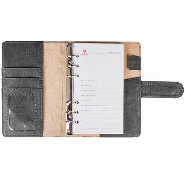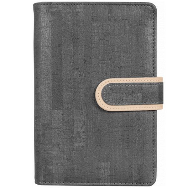 Бизнес-организатор, магнитная застежка, искусственная кожа, на кольцах, комбинированная обложка, фактура - пробка, 130 * 190 мм, серый.