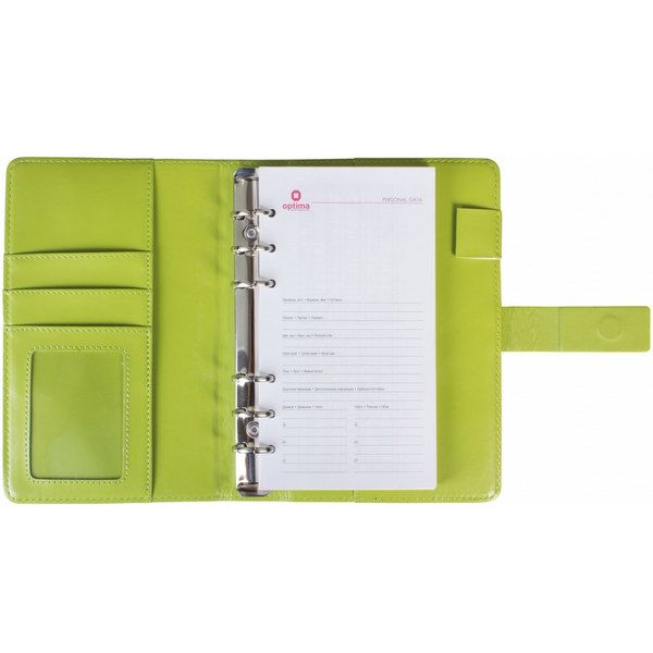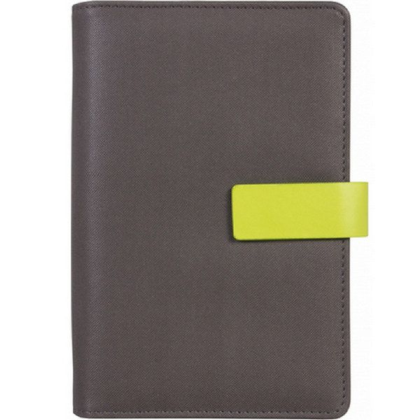 Бизнес-организатор, магнитная застежка, искусственная кожа, на кольцах, комбинированная обложка, 130*190 мм, коричнево-салатовый