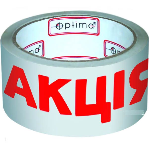 Клейкая лента упаковочная информационная Optima, позволяет выделить упакованый груз. Не боится влаги, не темнеет со временем. Имеет сильный клеящий слой.