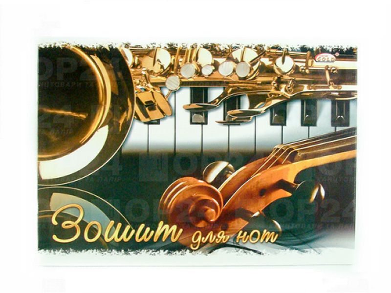 Тетрадь для нот горизонтальная формат А-4 на 16 листов. Обложка полноцветная + УФ-лак, мелованный картон 200 г/м2, внутренний блок - офсетная бумага плотностью 70г/м2. В ассортименте 4 дизайна обложки. Производство -Украина.