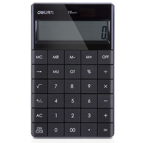 Калькулятор Deli 12 разрядний, бухгалтерский, 2елементы питания, бесшовные кнопки, черный, 165х103х12,0мм.
