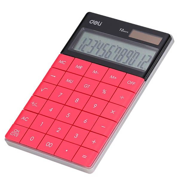 Калькулятор Deli 12 разрядний, бухгалтерский, 2елементы питания, бесшовные кнопки, розовый, 165х103х12,0мм.
