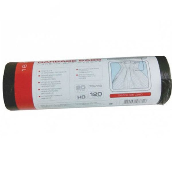 Пакет для мусора объемом 120 литров используются в баках для мусора и отдельно от них. Выполнен из полиэтилена. Цвет черный.