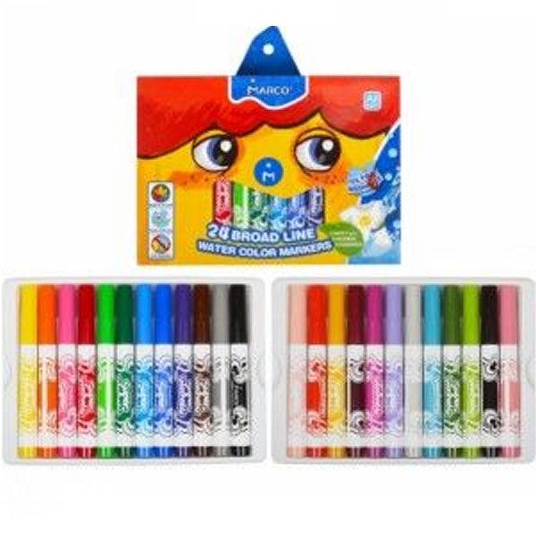Фломастеры MARCO JUMBO, предназначенные для рисования и раскрашивания, помогут вашему малышу создать неповторимые яркие картинки. Комплект включает в себя фломастеры 24 ярких насыщенных цветов в разноцветных пластиковых корпусах (цвет корпуса соответствует цвету чернил).Наконечники фломастеров устойчивы к повышенному давлению и не разнашиваются со временем. Чернила не токсичны и абсолютно безопасны, на водной основе, идеально смываются с рук и вещей. Фломастеры упакованы в коробку с европодвесом. Круглое острие фломастера 3,5 мм. Размер фломастера 14,5х1,5см. Возраст от 3х лет.