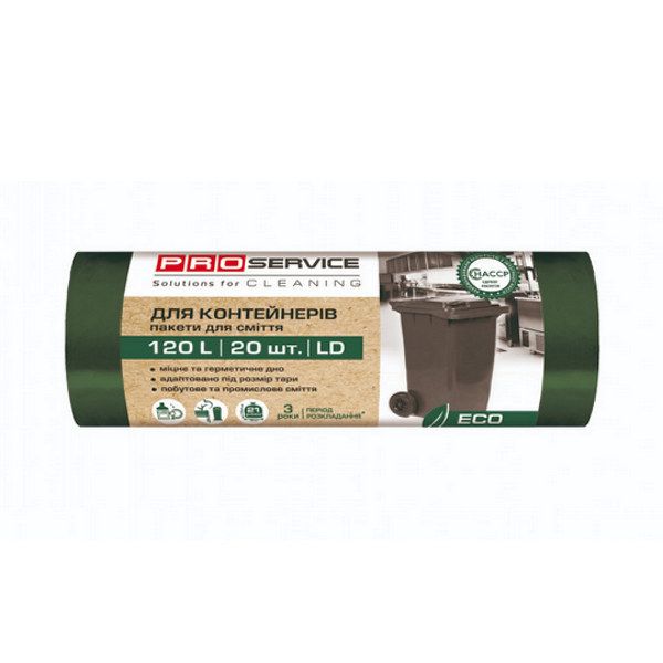Пакет для мусора объемом 120 литров используются в баках для мусора и отдельно от них. Выполнен из полиэтилена. Цвет зелений ,биоразлагаемые
