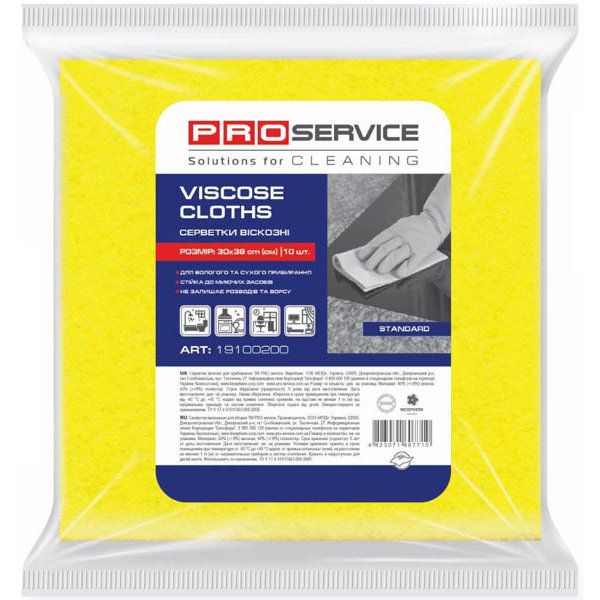 Вискозные салфетки PRO service серии Standard предназначены для влажной и сухой уборки на всех типах поверхностей. Невысокая плотность 90 г/м.кв. и удобный размер 30х38 см позволяют предложить оптимальное соотношение цена-качество для достижения эффективного результата уборки. Мягкая и прочная структура материала не царапает поверхность, а так же устойчива к различным моющим средствам. Салфетки универсальные. Количество в упаковке: 10 шт. Размеры: 30 * 38 см.