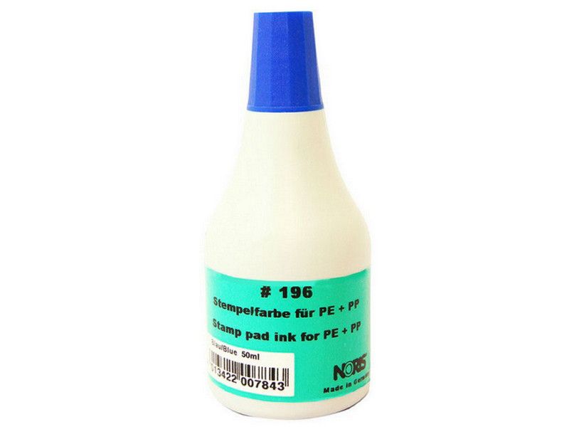 Быстросохнущая штемпельная краска Noris Color синего цвета на спиртовой основе для полиэтилена и полипропилена. Время высыхания (зависит от материала и внешних условий сушки) – от 12 до 30 секунд. Объем 50мл