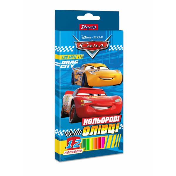 Карандаши цветные 12шт. 1Вересня пластиковые Cars треугольные