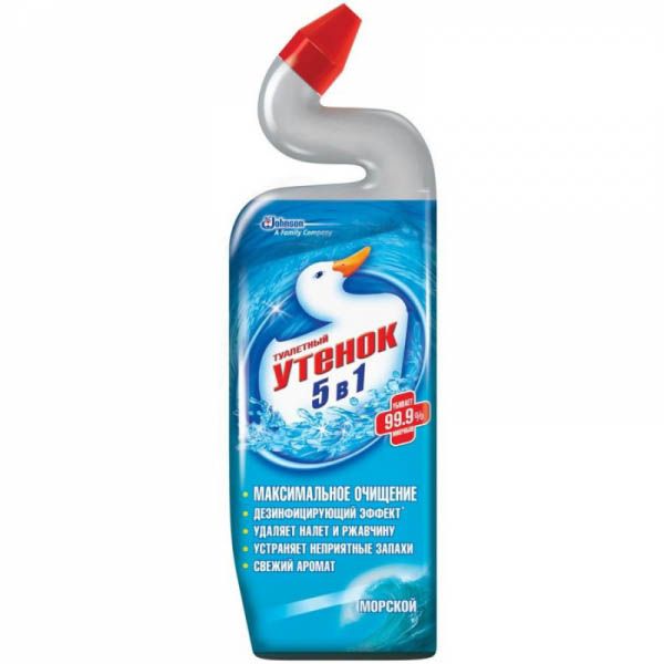 Глубокая чистка от налета и ржавчины. Убивает 99.9% микробов, устраняет неприятные запахи. Благодаря уникальной форме горлышка бутылки Туалетный Утенок лучше попадает в труднодоступные места скопления бактерий под ободком унитаза. Средство эффективно даже под водой.