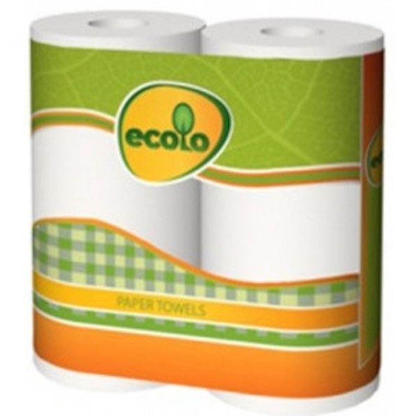 Полотенце бумажное Ecolo 2-х слойное, 2шт. целлюлоза, рулон