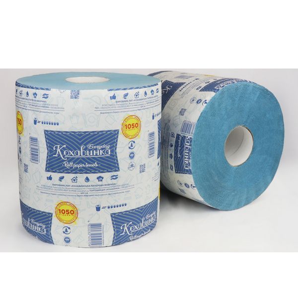 Полотенце бумажное Кохавинка 1-но слойное, 1шт. макулатурное, рулон 1050отрываний