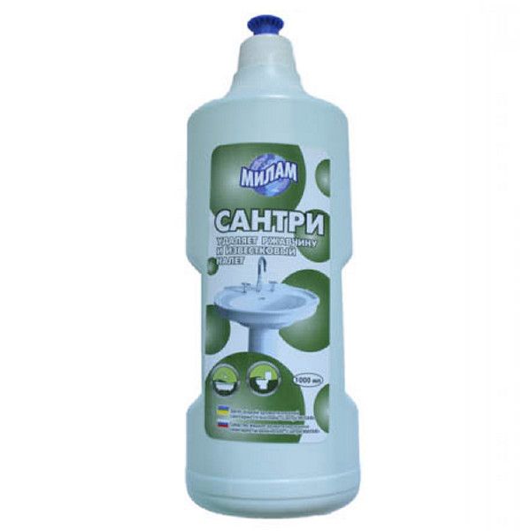 Санитарно гигиеническое средство «Сантри-МилаМ " - эффективно и быстро очистит Вашу сантехнику от грязи, ржавчины и известкового налета, уничтожит микробы и придаст ей гигиеническую чистоту и блеск.