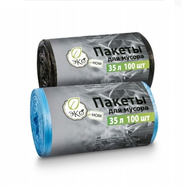 Пакет для мусора объемом 35 литров используются в баках для мусора и отдельно от них. Выполнен из полиэтилена. Цвет черный/синий. 6мкм