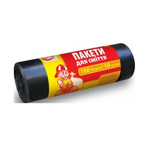 Пакет для мусора объемом 160 литров используются в баках для мусора и отдельно от них. Выполнен из полиэтилена. Цвет черные. 90*108 см