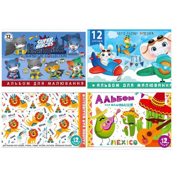 Альбом для малювання 12арк 100г перфорація диз. 21437-21440