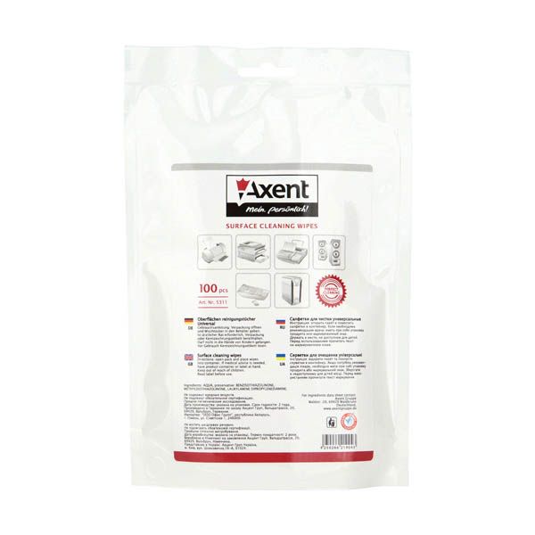 Салфетки влажные для оргтехники универсальные 100шт запасной блок Axent