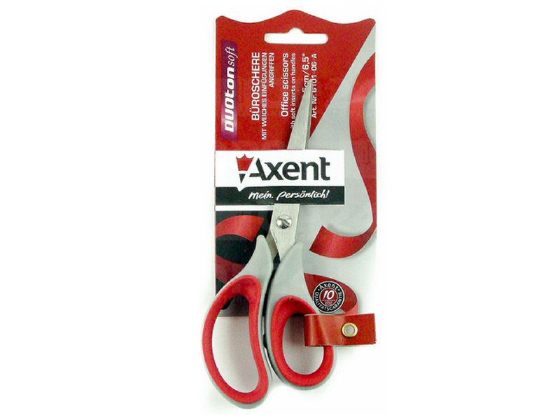 Ножницы 16,5 см пластиковые ручки, резиновые вставки серо-красные Duot Soft Axent на блистере