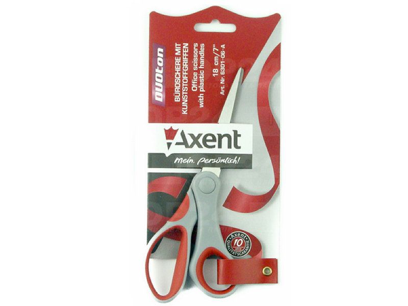 Ножницы 18 см пластиковые ручки, резиновые вставки Duot Axent на блистере