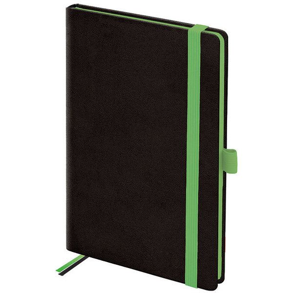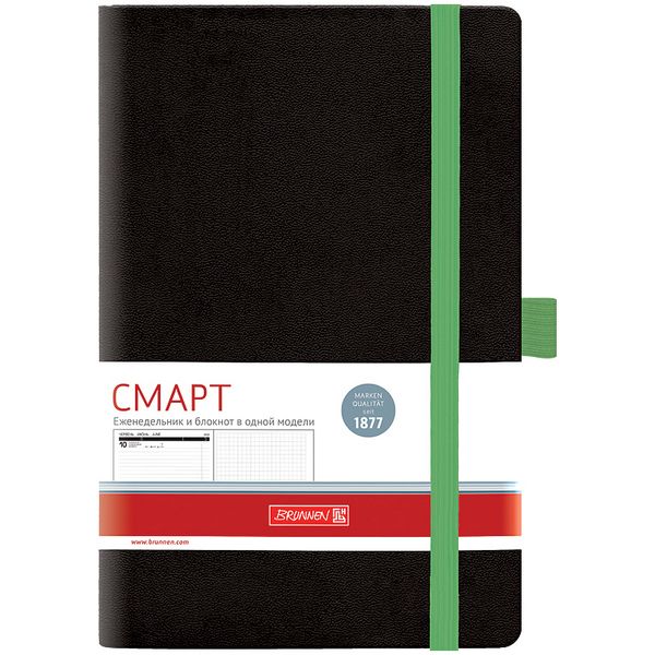 Еженедельник Brunnen А-5- Смарт Strong на резинке, черный с салатовым срезом
