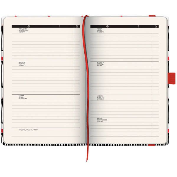 Мультифункциональная недатированная модель, в которой гармонично объединились еженедельник и блокнот. Отличное решение для тех, кому необходимо одновременно планировать и детализировать большое количество задач.Трендовый европейский формат еженедельника украшен лицензионным принтом BBH. Сделан из плотной кремовой бумаги плотностью 80 г/м2 с деликатной серой печатью. Удобный внутренний блок, страницы для общего планирования на год, 2 закладки, петля для ручки, фиксирующая резинка, карман для бумажных мелочей на форзаце — каждая деталь тщательно выполнена и олицетворяет истинное немецкое качество. • Еженедельник: неделя на развороте. • Эластичная фиксирующая резинка. • Плотная кремовая бумага. • Деликатная печать серого цвета. • Страницы для общего планирования на год.