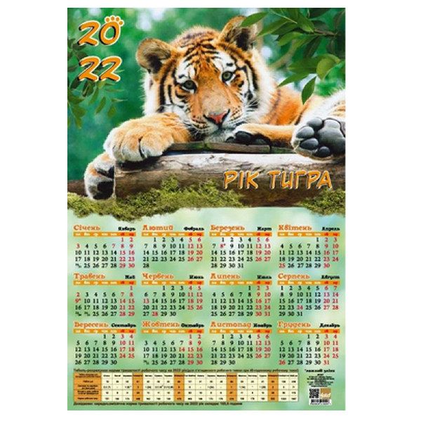 Календарь А-4 Тигренок, с таблицей рабочего времени, размер 236х342мм 2022*ФП
