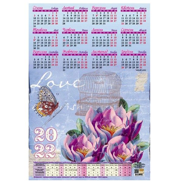 Календарь А-4 Лотосы, с таблицей рабочего времени, размер 236х342мм 2022*ФП