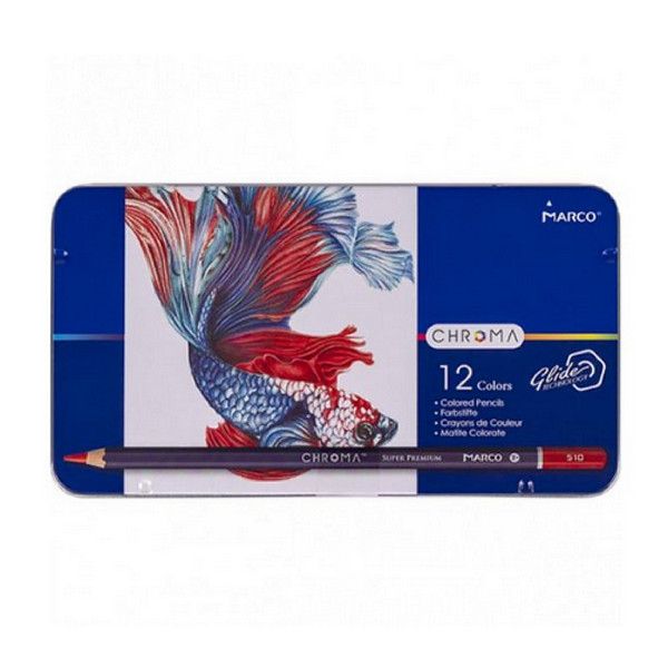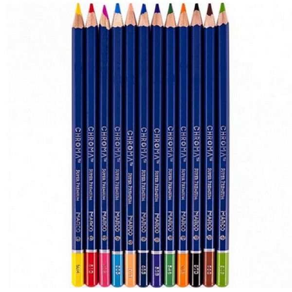 Карандаши цветные Marco Chroma 12 цветов 8010-12TN. Карандаши этой серии получили новое цветовое решение корпуса, с нумерацией каждого цвета в соответствии с цветовой палитрой Marco.Стержень карандашей CHROMA, по своему составу и качеству, открывает новую линейку в длинном ассортиментном ряду продукции торговой марки Marco. Толщина стержня 3,3 мм, что не является чем-то необычным, но свойства для рисования выводят стержень на качественно новый уровень в разряд Cупер Премиум. Стержень обладает повышенной гладкостью и укрывистостью, кроме того радует сочностью наносимых цветов и мягкостью их нанесения. Упаковка металлический пенал.