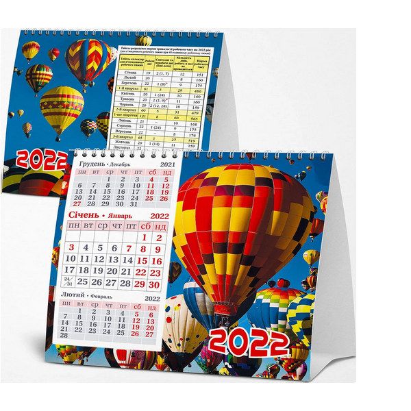 Календарь квартальный настольный "шалаш" с перекидным блоком на пружине с табелем расчета рабочего времени (пятидневная рабочая неделя) и календарём на полный год на обороте.