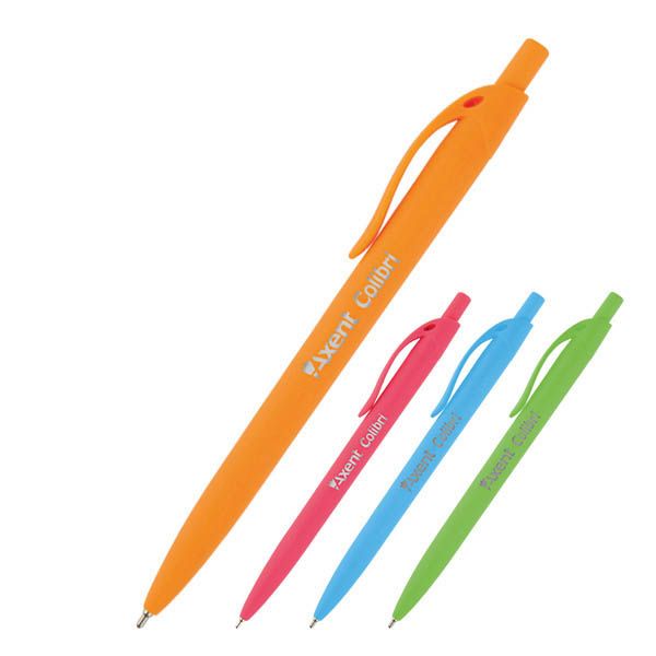 Ручка масляная Axent Colibri автоматическая прорезиненный корпус, ассортимент цветов корпуса. Пишущий узел 0,7мм. Стержень ASR1028-A. Длина стержня 107мм. длина написания-800м.