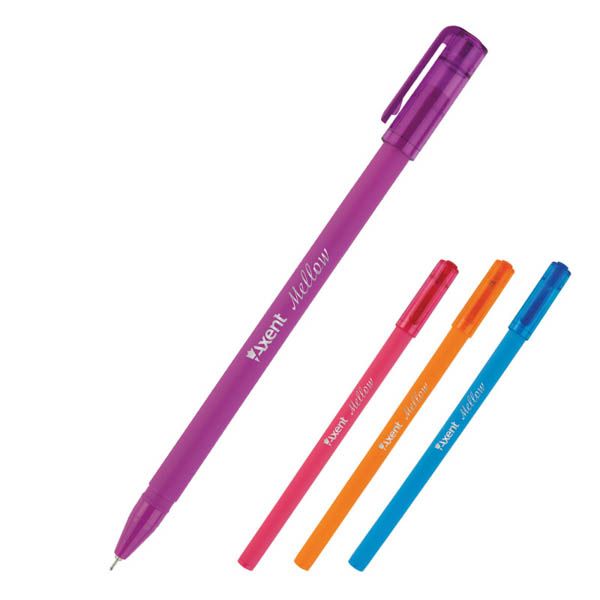 Ручка масляная Axent Mellow прорезиненный корпус, 0,7мм ассорти, синяя. Стержень 140мм. Длина написания 1300м.