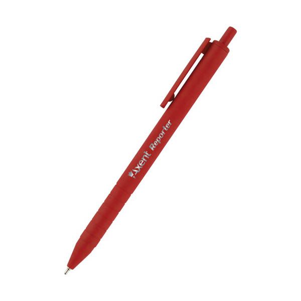 Ручка масляная Axent Reporter автоматическая, прорезиненный корпус, красная