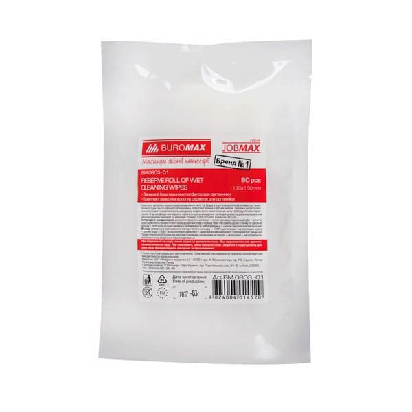 Салфетки влажные для мониторов TFT и LCD 80шт запасной блок Buromax