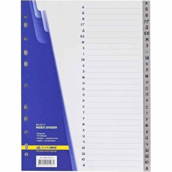 Цифровой индекс-разделитель для регистраторов А4 BUROMAX – удобный и простой в использовании аксессуар для папок-регистраторов. Он служат для систематизации, быстрого и удобного поиска документов в подшивке. Титульная страница разделителя – удобный лист для описи вложенных документов. Разделители цветные с разбивкой по цифрам от А до Я. А уникальная перфорация подходит для всех папок-регистраторов или папок с кольцевым механизмом.