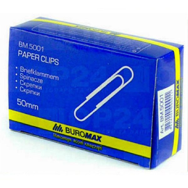 Скрепки канцелярские никелированные Buromax длинной 50 мм. Имеют удобную закругленную форму, что позволяет надежно скреплять документы. В картонной упаковке 100 шт.