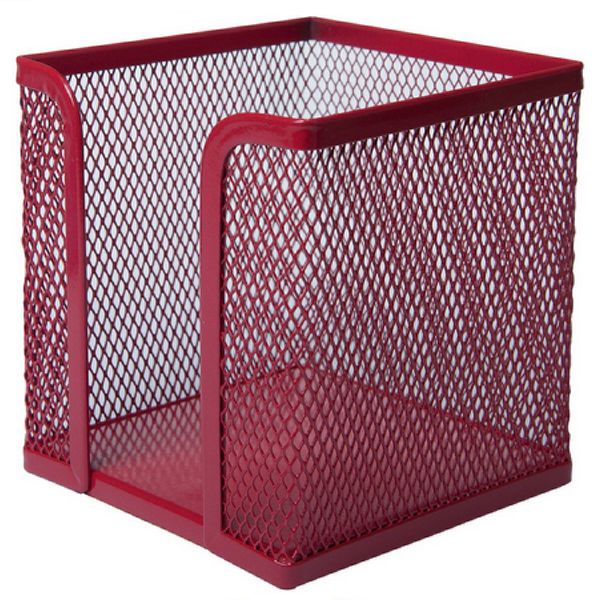 Бокс для бумаги, металлическая сетка, размеры - 100х100х100 мм, специально для эргономичного хранения бумаги для заметок, цвет - красный.
