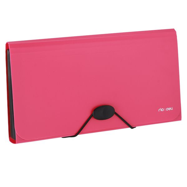 Папка пластиковая А-6 13 отд. на резинке + пуговица Deli розовая