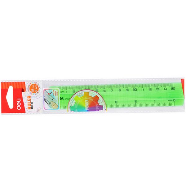 Линейка пластиковая 15см 2шкалы сантиметри+дюймы, прозрачная флуоресцентная ассорти Deli Pioneer