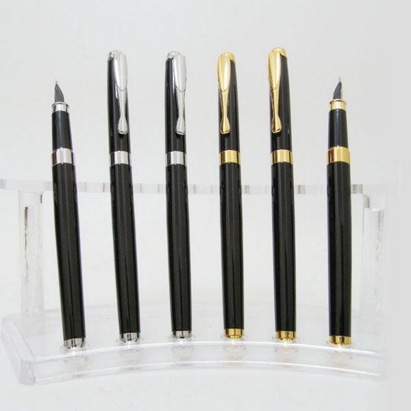Ручка перьевая в металлическом корпусе с возможностью замены картриджа. Цвет корпуса черный с элементами хром/золото
