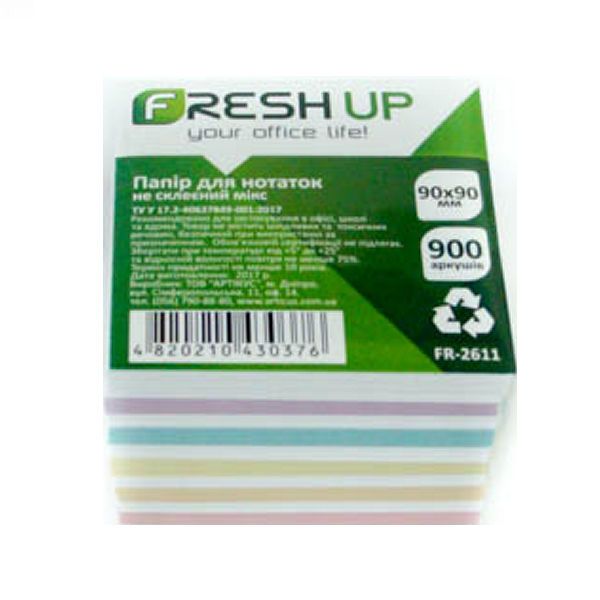 Бумага для заметок 90х90 900л цветная Микс н/кл.,инд.уп. Fresh